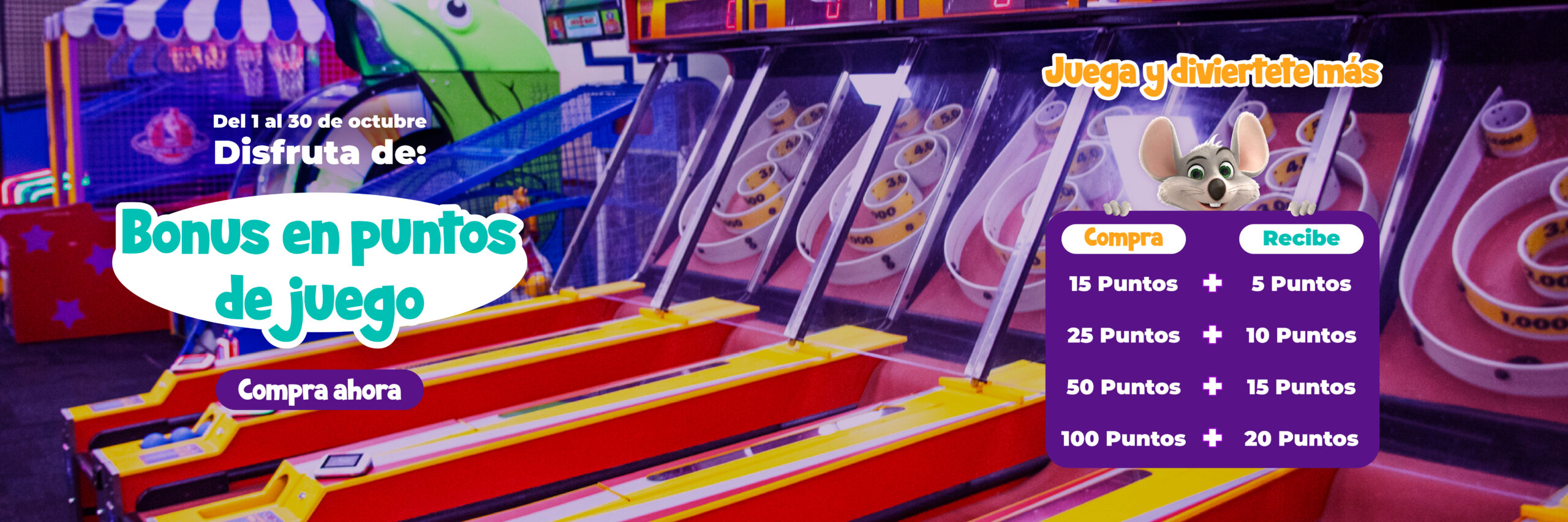 ¡Descarga tu invitación digital y únete a la diversión en Chuck E. Cheese! Comparte la emoción de visitarnos con tus seres queridos.