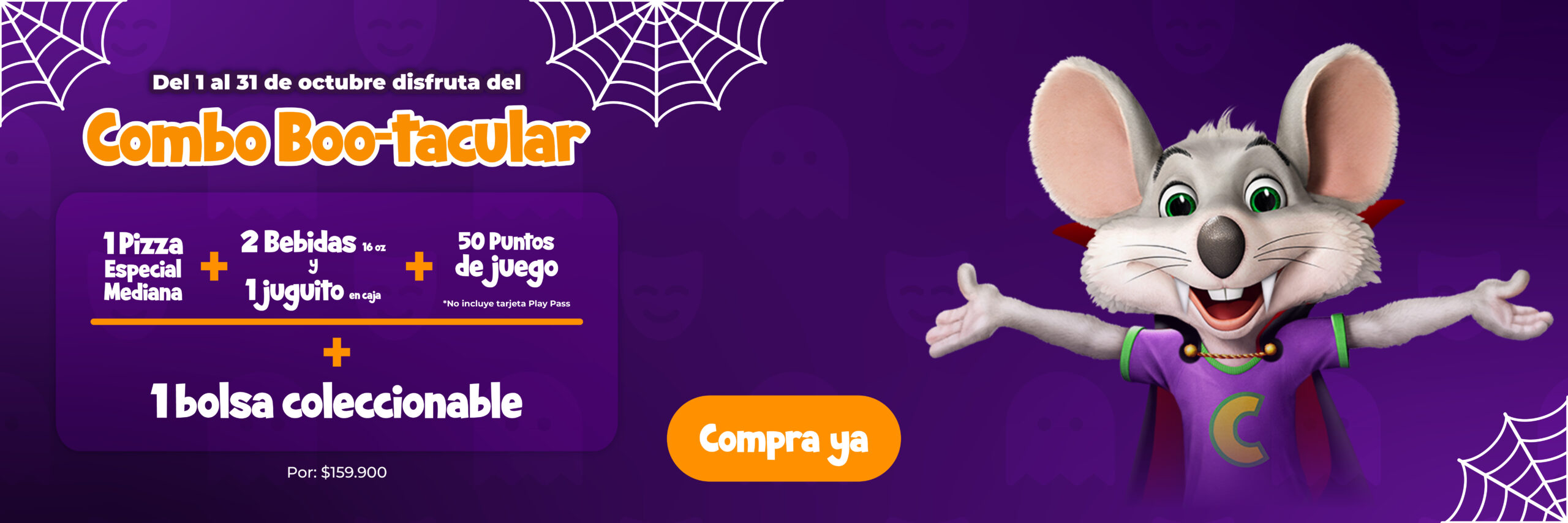 - Orejitas Chuck E. (gorro), ticket blaster, souvenir de temporada algodón de azúcar para el festejado